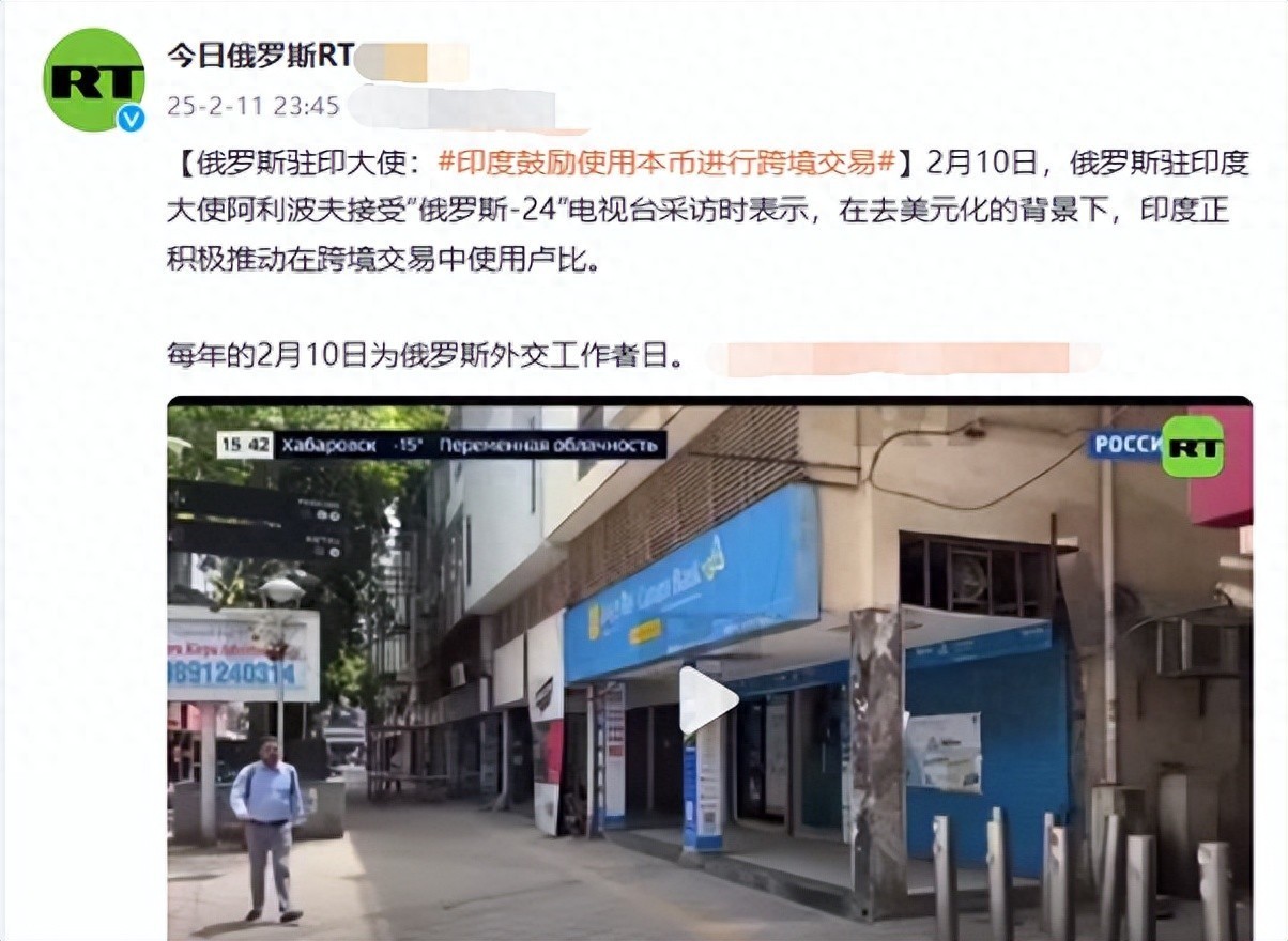 俄罗斯媒体今日俄罗斯RT在2月11日报道了,印度再度强调,将用卢比结算的报道。